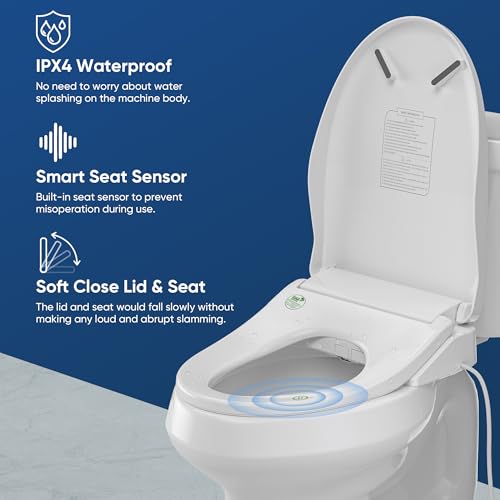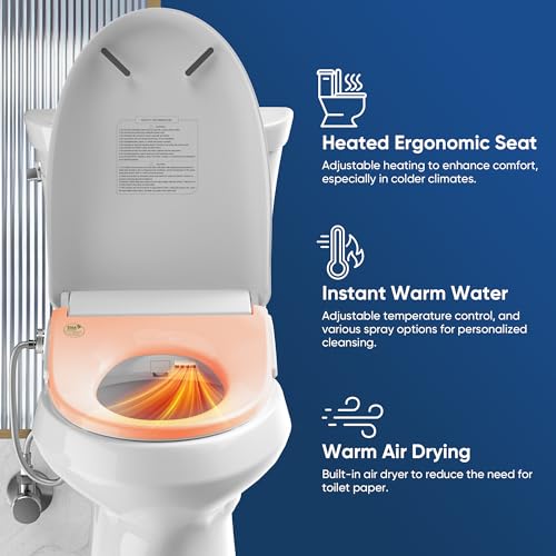Specification: Smart Bidet Toilet Seat, Electric Heated Toilet Seat with Instant Warm Bidet Wash & Warm Air Dryer, Self-Cleaning Stainless Steel Nozzle, Soft Close Lid, Elongated