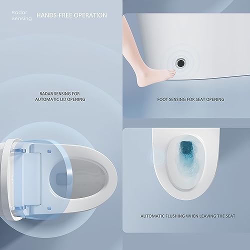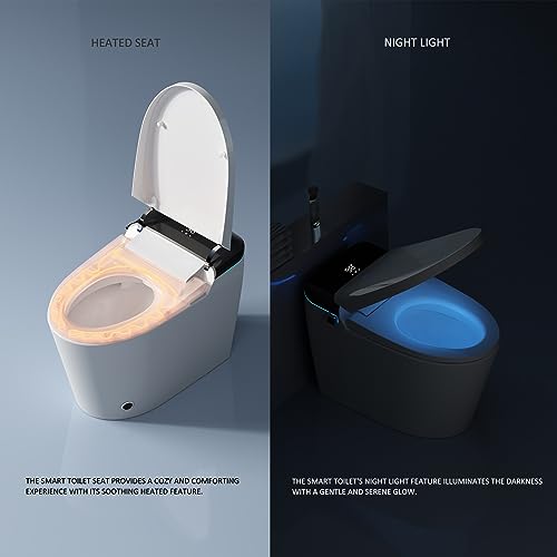 Specification: Smart Toilet with Auto Open & Auto Close Lid, Auto Flush, One Piece Toilet with Bidet Built in, Modern Elongated Toilet with LED Night Light, HD Display, Remote Control.