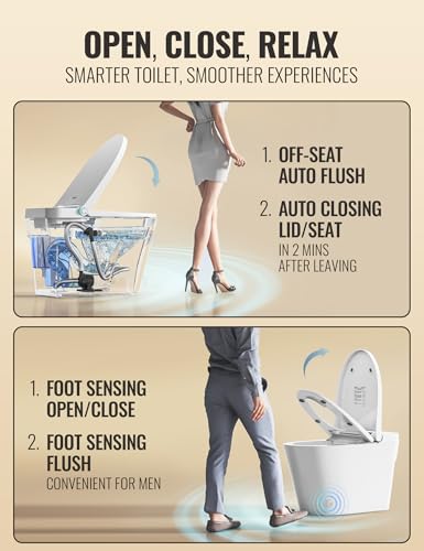 HANDS-FREE OPERATION: Luoware S01 PRO Smart Toilet offers a fully hands-free experience with Auto Open/Close, Off-Seat Auto Flush, Foot Sensing Open/Close/Flush, along side a Wireless Remote and Side Knob for customizable options. You’ll never have to touch the toilet again—a really hygienic experience.