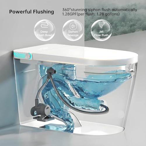 Specification: Smart Toilet with Bidet Built In, Smart Toilet with AUTO Open/Close Lid, 85MM Heated Bidet Toilet Seat with Soft Close, Bidet Warm Water, Warm Air Dryer, Voice Control, Foam Shield(CY-02 PRO)