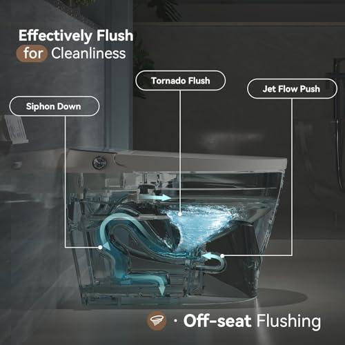 Automatic Flush Toilet: Tankless toilet with Tornado flushing technology,effectively cleaning and eco-friendly with low water consumption. 1.27GPF. Flushing may also be easily controlled by the use of remote keep an eye on or knob.