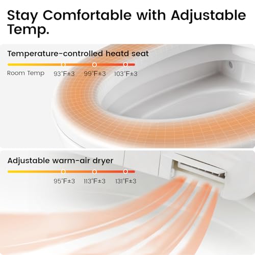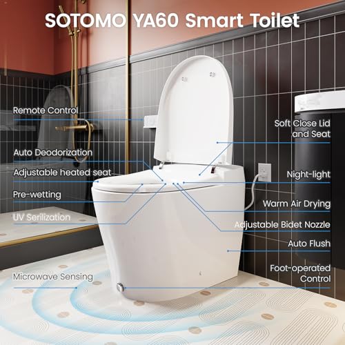 Easy to Install: YA60 one piece smart toilet is 12 inch Rough-in,Our smart toilet is mostly assembled, with only some parts left to install to save you installation time. With comprehensive installation instructions, videos, we assure you a worry-free setup experience.