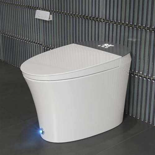 Specification: Smart Toilet with Powerful Flush, for Low Water Pressure, Luxury Smart Toilet built-in bidet with Instant Warm Water, Auto Open& Close Lid and Kick Control, Deodorization, Night Light