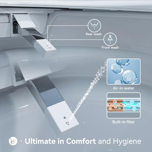 Powerful Flushing: Smart toilet with built-in water tank and Pump-assisted to Powerful flushing.Water merges and swirls 360°to flush each spot inside the bathroom bowl. No water pressure limit, and suitable for quite a lot of families. Powerful and water-saving (1.11GPF)