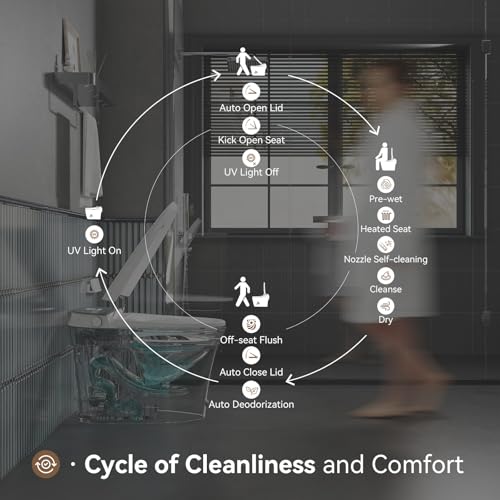 Smart Bidet Toilet: The smart toilet lid opens Routinely as you approach the bathroom. You’ll be able to also keep an eye on it by remote keep an eye on or kick button. Routinely activates a Tornado flush and then closes the lid when you leave.