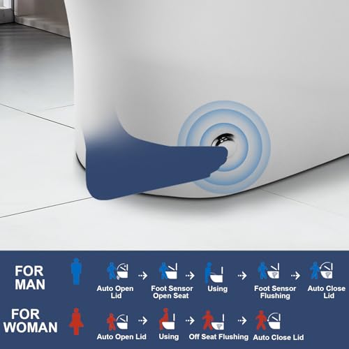 [AUTOMATIC TOILET] Off-seat flushing, button control flushing, foot sensing flushing, remote control flushing. Enjoy hands-free operation.The built-in tank doesn’t have any requirements for water pressure.