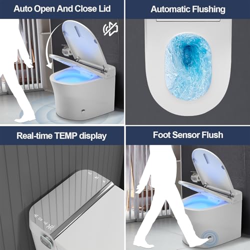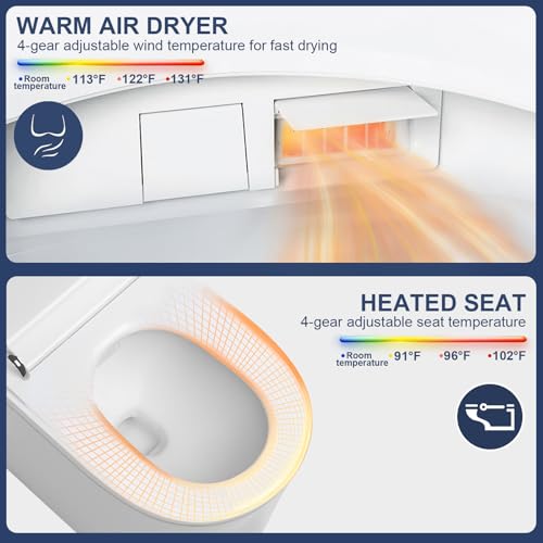 [SMART LAVATORY FOR THE BATHEROOM] This integrated lavatory combines the simplicity of style with comfort. All of the range of convenience features includes heated seats, night lights, self-cleaning nozzles, immediate hot water, warm dryers, LED displays, and automatic washing, in addition to a remote regulate.