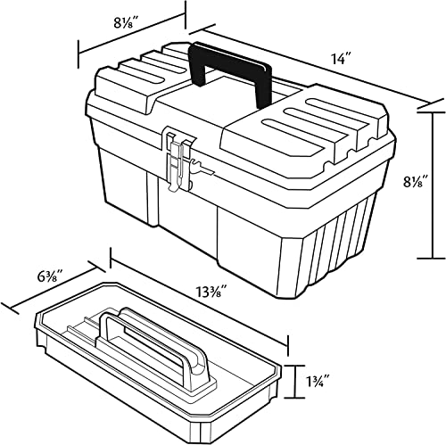 Specification: Akro-Mils 09514 ProBox 14-Inch Plastic Toolbox for Tools, Hobby or Craft Storage Toolbox with Removable Tray, 14-Inch x 8-Inch x 8-Inch, Black