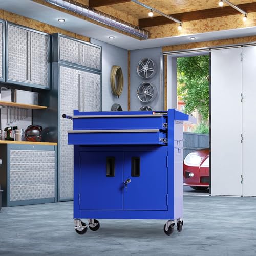 Tool Chest Heavy Duty Cart Steel Rolling Tool Box with Lockable Doors (TZ12 Blue)