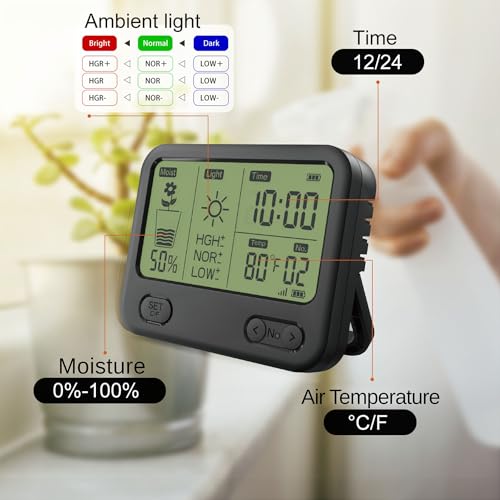【LCD Display with Time Function】: The portable LCD display not only showcases soil metrics but also functions as a clock. Offers versatile monitoring capabilities suitable for tabletop or wall mounting.
