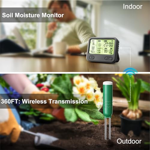 【Convenient and Versatile Usage】: Simply insert the waterproof sensor (IPX5) into the soil for seamless data transmission. Suitable for indoor and outside applications, our moisture meter is perfect for gardening, farming, and potted plants. A great gardening gifts for women and men.