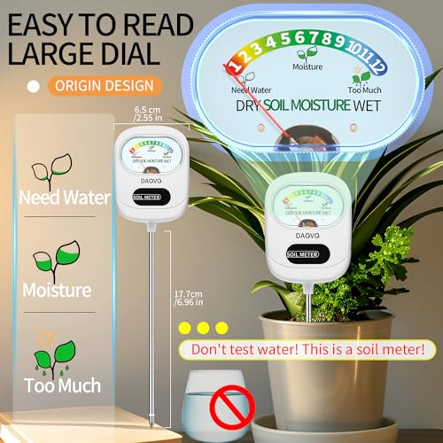 2024 UPGRADED SOIL TESTER: Our soil moisture meter utilized advanced tech, which provides more accurate readings. User-friendly intuitive design makes it easy to make use of. Moreover, it added features a lighting LED for clear reading in all lighting conditions.