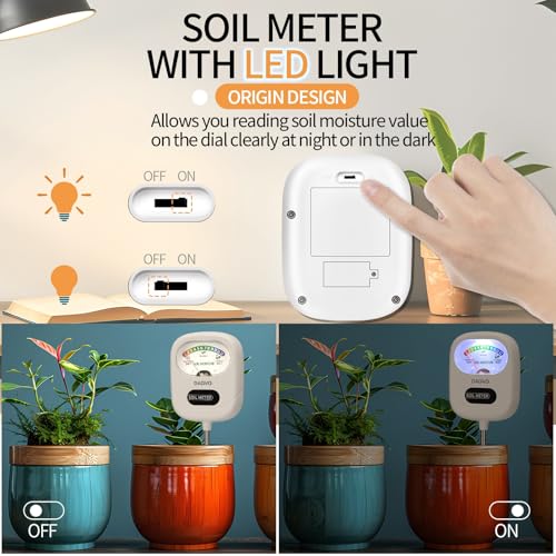INNOVATIVE & PRACTICAL LIGHTING DESIGN: Our plant soil moisture meter has an innovative built-in LED light that illuminates the screen for simple reading of soil moisture values, enhancing visibility and ambiance in each corner.