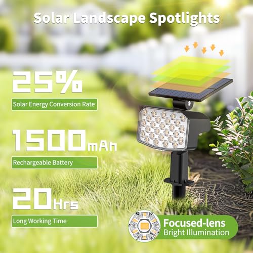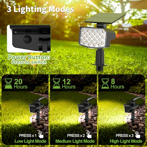Specification: 8 Pack Solar Spot Lights Outdoor, 2-in-1 Solar Lights Outdoor Waterproof IP65, Solar Landscape Spotlights 3 Modes, Solar Powered Outdoor Lights for Yard Garden Pathway Driveway Tree(Warm White)