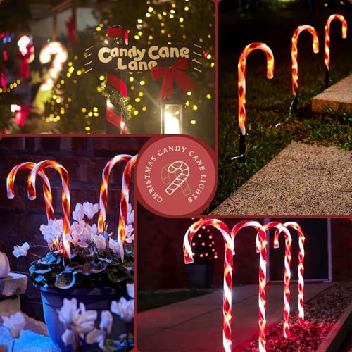 Specification: IDEAALS 24-Pack Upgraded Solar Christmas Candy Cane Lights, Solar Pathway Lights Waterproof, Christmas Decorations Outdoor with 8 Modes for Party Patio Garden Lawn Yard Decor