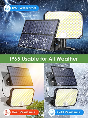 【Super Bright + Wide Irradiation Range】Solar flood lights outdoor with 190LED, the detection distance of the outdoor led solar light is up to 26.4ft/8-10m, the detection and lighting angle of solar security lights is 120° & 180°. Solar flood lights outdoor, solar motion sensor light outdoor that covers multiple lighting areas & very strong & bright light with a very open beam. Solar motion lights outdoor enough to illuminate dark corners such as backyard, garage, gardens, porch, terrace.