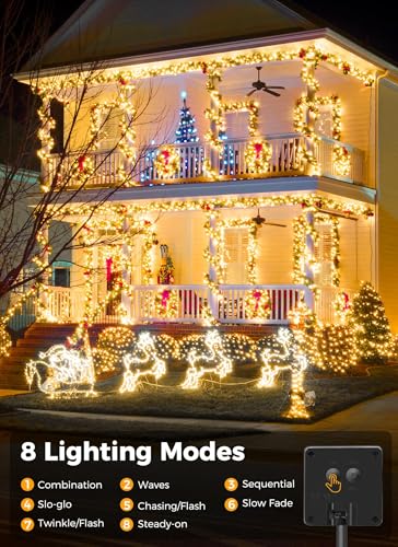 Specification: Solar String Lights for Outside, 2-Pack 200LED 78FT Total Solar Lights Outdoor IP65 Waterproof Solar Powered Lights with 8 Lighting Modes for Party Garden Yard Holiday Tree Decoration, Warm White