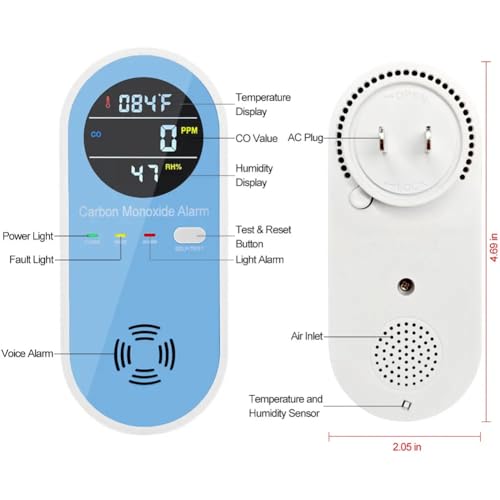 Vzmcov Plug-in Carbon Monoxide Alarm with Temperature and Humidity Display