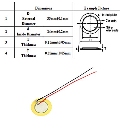 Specification: DZS Elec 15PCS 35mm Piezo Disc Transducer Contact Microphone Trigger Sound Sensor with 4 Inches Wires for Acoustic Instrument