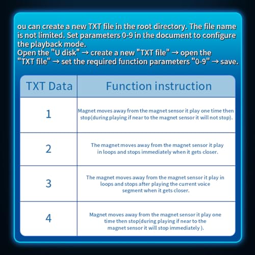 Download and Delete Music : The voice chips support download your own mp3 music, also record through MIC.You can connect to the computer to delete the built in music. Personalize your settings by adjusting the playback mode in the “config.txt” file. This allows you to achieve a personalized experience.