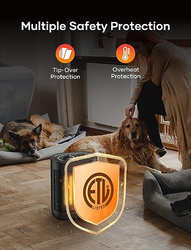 SAFE & RELIABLE: Space heaters for bedrooms are ETL-Certified. Built-in tip-over and overheat protection, mighty little heater for complete peace of mind. If you tip it over, the compact heater immediately stops working. Safety cutout occurs in any overheating situation.