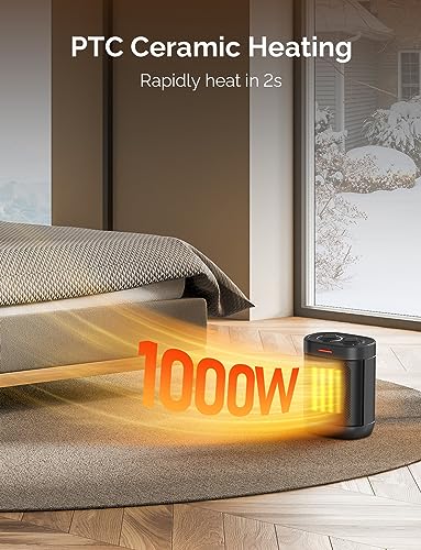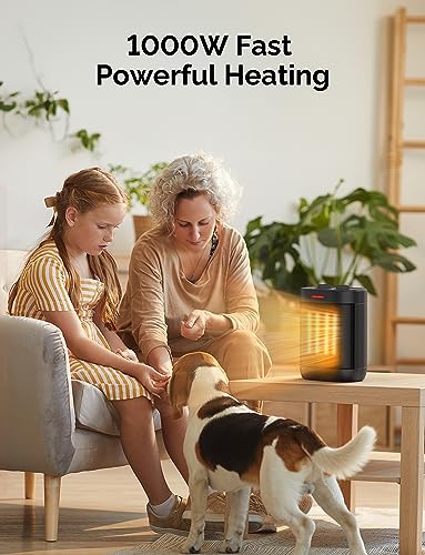 1000W Small Space Heaters for Indoor Use, PTC Ceramic Personal Heater with Overheating & Tip-Over Protection, Quiet Heating for Desktop Office Home