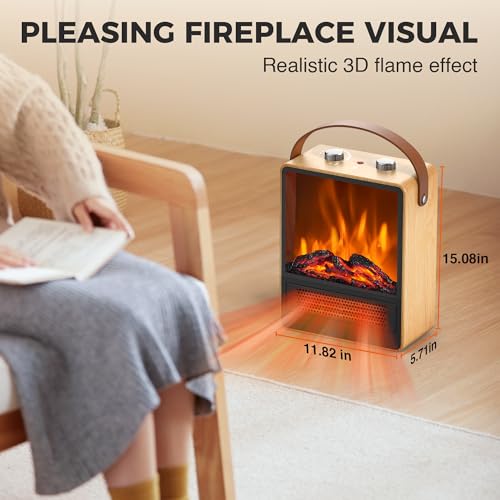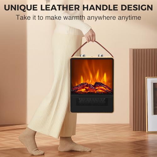 Portable & Durable: This space heater fireplace is portable and lightweight. Featuring a high-quality belt carry handle, no matter you want to use it in your living room, dining room or bedroom, this portable heater can be easily transported.