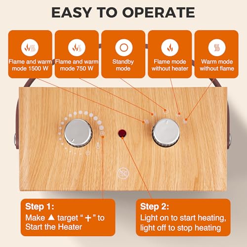 4 Personalized Modes: This electric space heater offers four modes: Flame with 750W Heat; Flame with 1500W Heat; Flame without Heat; Heat without Flame. It fits different indoor scenes, such as living room, bedroom and office.