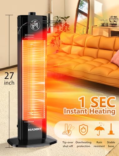 Specification: Outdoor Electric Patio Heater, Haimmy 27- inch Outdoor Electric Patio Heater, 1200W Instant Heating, 2 Heat Levels, Tip-Over & Overheat Protection, IPX5 Waterproof Tower Space Heater