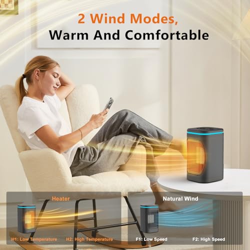 2-in-1 Heater Fan – The portable space heater has two modes: fast heating and natural air fan, with high and low speeds. You can adjust the ideal wind speed or mode through the touch panel or remote control of the electric heater, making it easy to use. It can be used as a space heater in winter or as a fan in summer, saving costs.