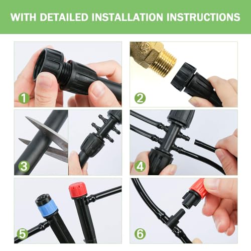 Save time and energy: This plant watering kit includes everything you want to get started with drip irrigation, making it easy to water multiple plants. Use this kit to build, expand, or repair your drip irrigation system. We provide an instruction manual in this drip irrigation kits, so all you want to do is connect the main hose to the faucet and then connect the dispenser hose and sprinkler head as needed. And it can save up to 50% of water consumption
