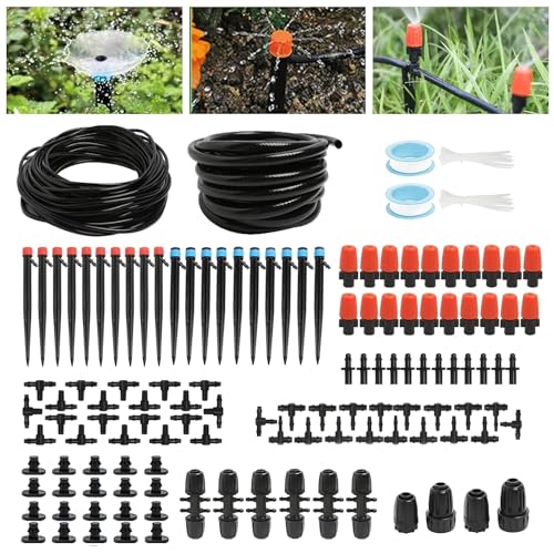 Multiple Applications & Excellent After-Sales Service: This irrigation kit is designed for a variety of outside spaces, including lawn irrigation, patios, gardens, vegetable beds, rooftop cooling, agriculture, flower beds, planted greenhouses, swimming pools sprinkler cooling and raised beds. Meanwhile, we also have excellent after-sales service, if in case you have any questions about this drip irrigation system kit, please do not hesitate to contact us, we can solve it for you at the first time