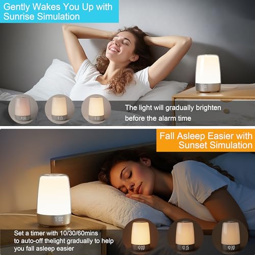 Specification: winshine Sunrise Alarm Clock, Wake Up Night Light for Kids, 10/30/60Mins Auto-Off Timer, Dimmable Sunlight Lamp, Touch Bedside Lamps for Bedroom, 6 RGB Colors, 5 Natural Sounds, Ideal for Gift