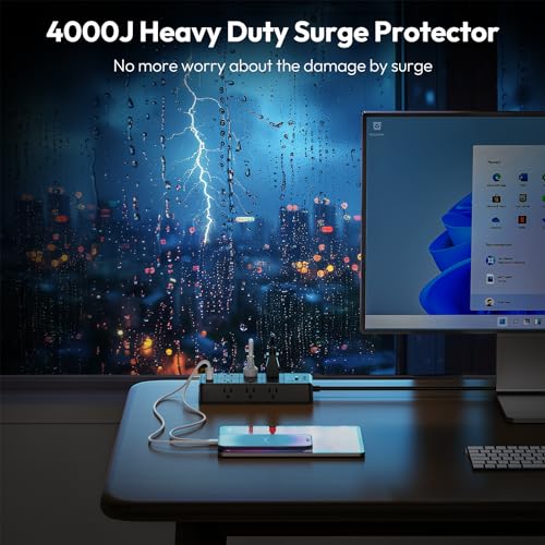 【4000J Surge Protector Extension Cord】- The 4000J surge protector protects computers, appliances, home theater, and office equipment from lighting, surges, or spikes. Our surge protector power strip with reliable 1625W and 13A overload protection switch, which provides the perfect electronic safety, will protect your expensive devices and your home.