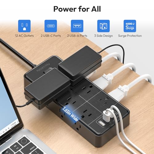 Specification: Surge Protector Extension Cord 15FT, NTONPOWER 4000J Surge Protector Power Strip with 12 Outlets & 4 USB Ports (2 USB C), 3 Side Outlet Extender, Wall Mounted Extension Cord for Home Office