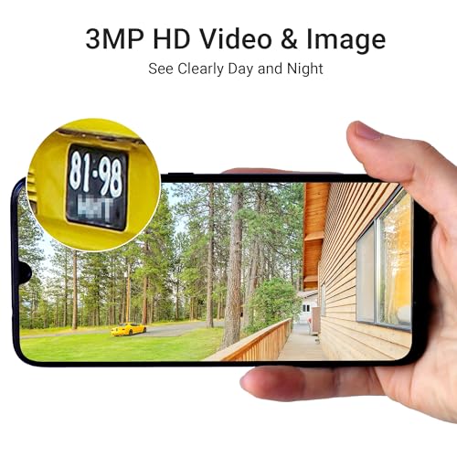 【2K QHD Image & Enchanced Night Vision】 With 3MP high-resolution lens, our solar outdoor camera captures super clear images with details. Enhanced bright floodlights and infrared lights provide both color and black-and-white night vision, ensuring excellent visibility up to 33ft even in low-light conditions