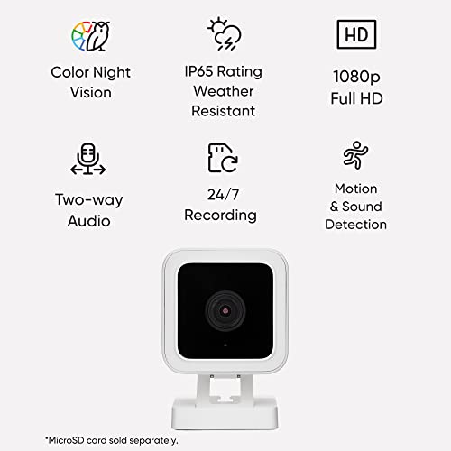 Indoor/Outdoor Home Security Camera. Capture moments indoors and outdoors with IP65 weather resistance. *Requires Wyze Outdoor Power Adapter (sold separately) for outdoor use.