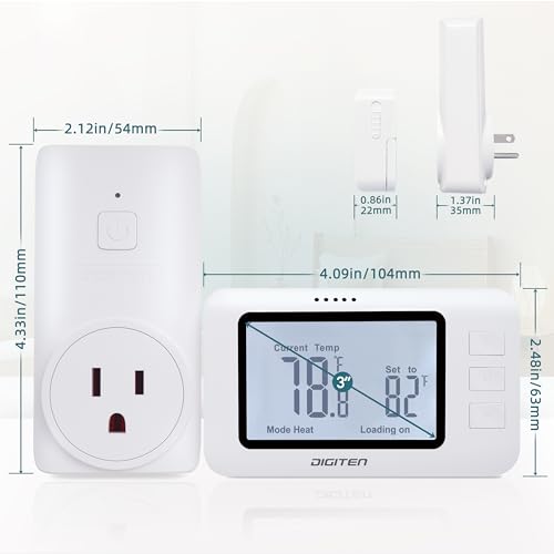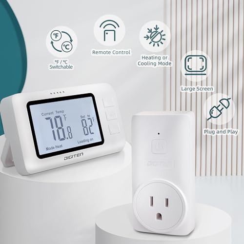 Specification: DIGITEN Wireless Thermostat WTC100 Pro Temperature Controller for Cooling & Heating, Remote Controlled Outlet, Easy-to-Use and Non-Programmable Thermostats for Home