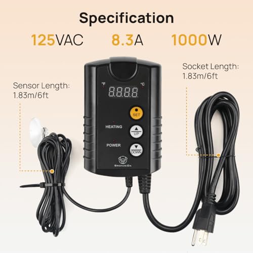 Simple Installation: The BronzeOx Digital Heat Mat Thermostat comes with a 6-foot power cord and grounded 3-prong plug for simple, hassle-free setup and compatibility with most standard outlets.
