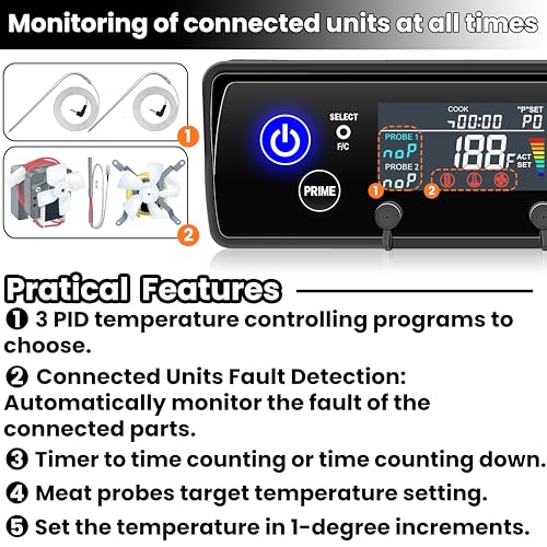 Upgrade your grilling with the Banbitebq PID Regulate Panel, compatible with quite a lot of Pit Boss models. Features 3 PID settings (A45, A70, A99) for precise temperature Regulate, an advanced fault detection system, and a built-in timer with meat probe temperature alerts. Fits cooking areas from 300 to 1600 sq in.