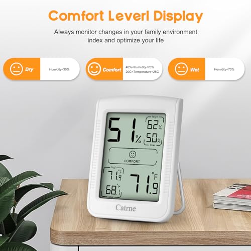 Comfort indicator: This humidity thermometer has an air condition indicator icon – Dry/Comfor/Wet, allowing you to constantly monitor changes in indoor humidity.