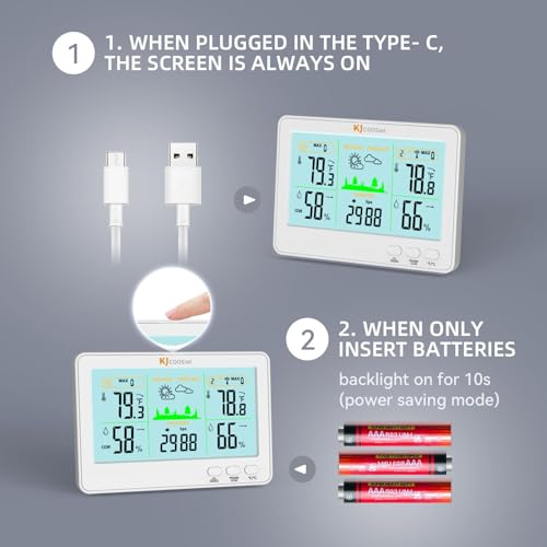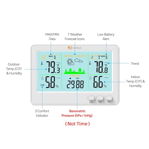 【Icons Weather Station】: This wireless weather station calculates the weather forecast for the next 24 hours based on weather-related variables, including changes in temperature, humidity and barometric pressure to generate a accuracy personalized forecast for your location, allow 3 to 7 days for barometric calibration as will ensure an accurate personal forecast for your location.