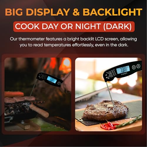Specification: Instant Read Thermometer | Ultra-Fast & Waterproof | Bright Backlight & Food Grade Probe | Auto Shut-Off | Includes Meat Temperature Chart | Perfect for Kitchen & Grilling
