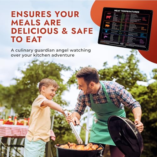 ENHANCED FOOD SAFETY — With a meat cooking temperature chart, you get a crystal clear roadmap to culinary safety. These cooking tools help remember to don’t serve undercooked, potentially harmful dishes to you, your family or your guests. Hit that magic steak temperature with the assistance of your meat doneness chart magnet and unlock a flavor explosion
