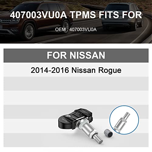 Specification: ACLONG TPMS Sensor for Nissan Rogue 2014, 2015, 2016, Pre-Programmed Tire Pressure Monitor System Sensors, 433MHz TPS Replaces 407003VU0A -4 Pack
