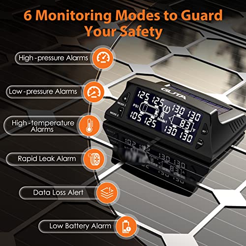 Specification: GUTA RV Solar Tire Pressure Monitoring System – Tire Pressure Monitoring System with 6 External Sensor (0-188 PSI), RV TPMS, LCD Display, Real-time Monitor Pressure, Sleep Mode