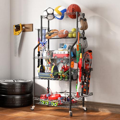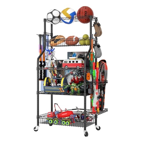 Specification: SINGAYE Ball Storage Garage Sports Equipment Organizer Basketball Holder Garage for Sports Gear and Toys, Rolling Ball Cart with Wheels for Indoor Outdoor Use