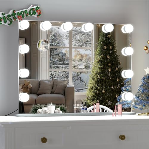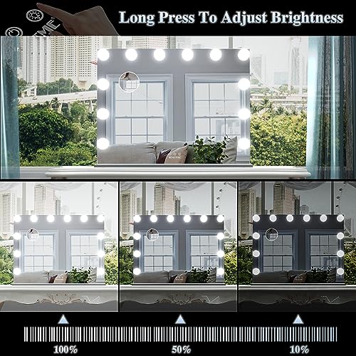 BEAUTME 28.3×21.3 Inch Large Vanity Mirror with Lights,Light Up Mirror Dressing Table Mirror with 10X Maynifying Mirror, Intelligent Touch Switch, Desktop/Wall Mounted Mirror