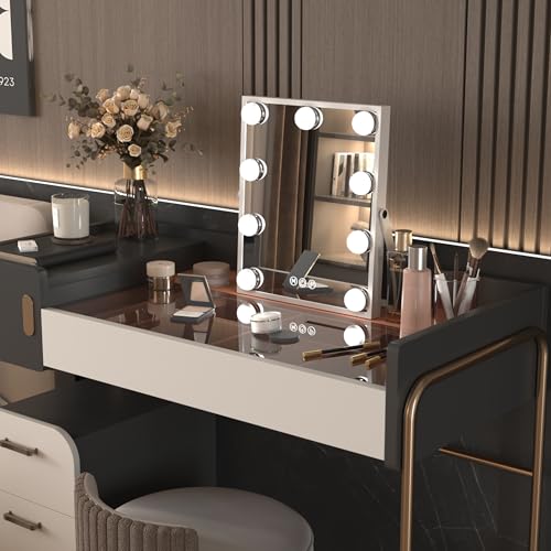 Specification: CASSILANDO Hollywood Vanity Mirror with Lights, Vanity Makeup Mirror with 9 LED Bulbs, 3 Color Lighting Modes, U-Shaped Bracket, Smart Touch Control