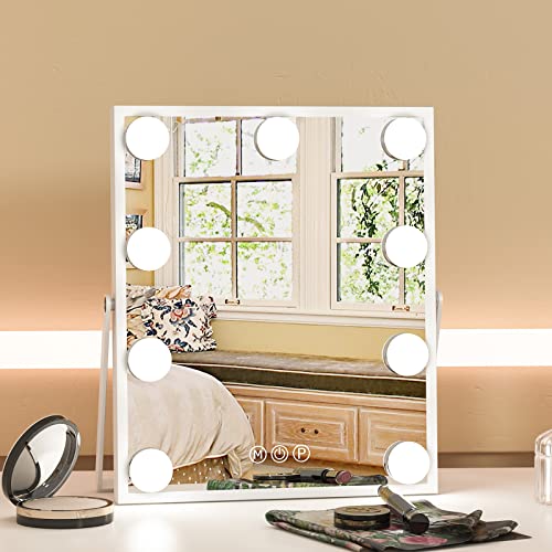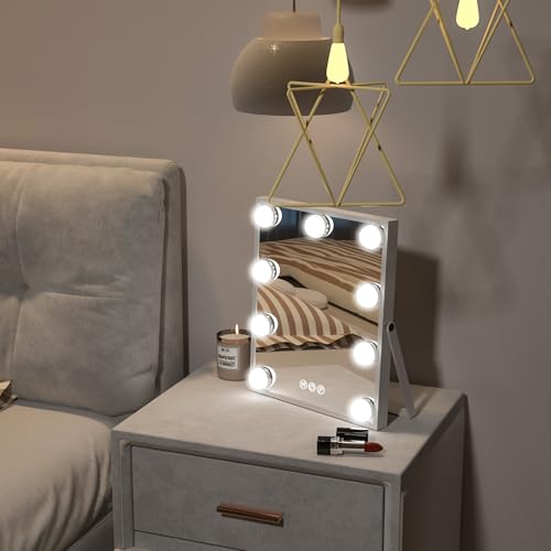 CASSILANDO Hollywood Vanity Mirror with Lights, Vanity Makeup Mirror with 9 LED Bulbs, 3 Color Lighting Modes, U-Shaped Bracket, Smart Touch Control